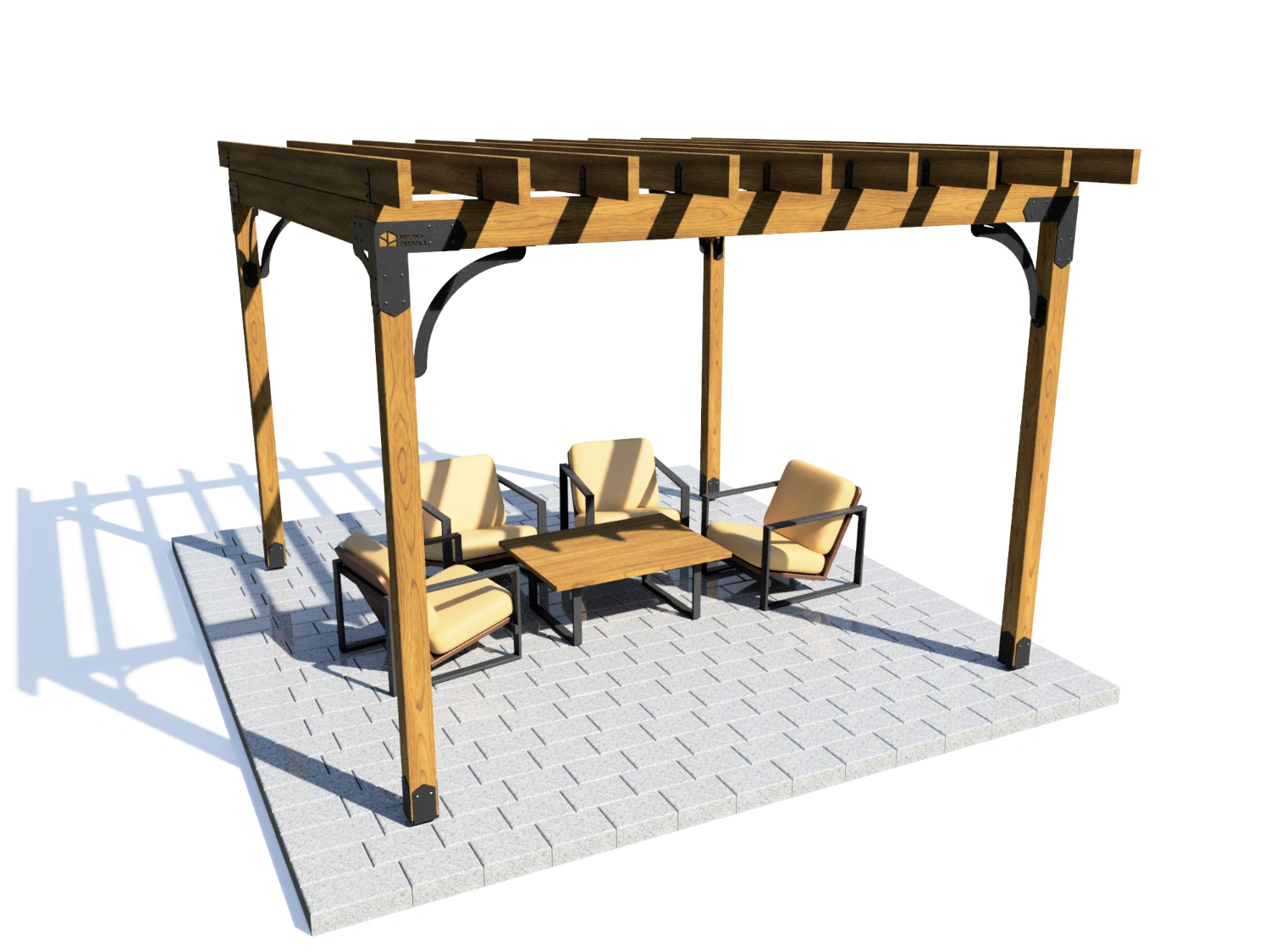 The Strong Pergola system is designed for quick and straightforward assembly. Each section can be assembled in around 60 minutes, with no special tools required. Pre-engineered steel connectors ensure accurate alignment — simply add the wood and assemble.